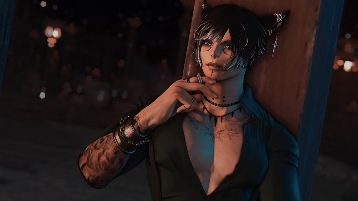 GPOSING. I've been Gposing since November 2022 because I fell in love with my catboi and had to immortalise him in picture form, and have been working to improve every day since.I'm a sucker for atmosphere and expressions. I don't know jack about lighting, but I'm doing my best to learn, and I've set up my own mini studios in various housing on EU.If you know of any cool studios on NA or EU, LET ME KNOW. Pretty please. I'm always down to world hop for cool locations. MODDING. I started with custom make up and minor texture editing with my own OCs. My WHM Viera Eeva has fully custom tattoos with glow, made by myself.I jumped into the deep end, deciding my demonic bunboy needed his own special horns, and created a fully custom set, made from scratch in a flu induced delirium with glowy magma bits and I couldn't be happier.I've since made multiple horn sets, some of which are available on XMA and Ko-fi.I then moved on to piercings, my Miqo'te Kazuya, Demonbun Solvair and Male'Ra Adjirai, all have custom set made by myself from scratch, as well as multiple options to choose from based on mood.