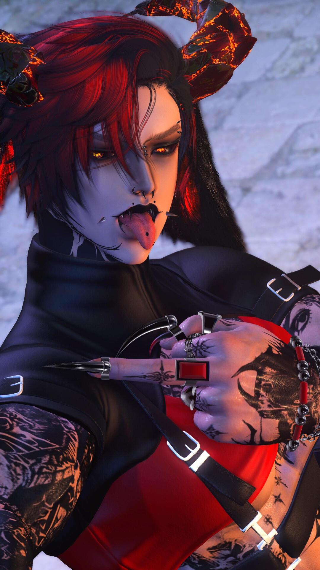 GPOSING. I've been Gposing since November 2022 because I fell in love with my catboi and had to immortalise him in picture form, and have been working to improve every day since.I'm a sucker for atmosphere and expressions. I don't know jack about lighting, but I'm doing my best to learn, and I've set up my own mini studios in various housing on EU.If you know of any cool studios on NA or EU, LET ME KNOW. Pretty please. I'm always down to world hop for cool locations. MODDING. I started with custom make up and minor texture editing with my own OCs. My WHM Viera Eeva has fully custom tattoos with glow, made by myself.I jumped into the deep end, deciding my demonic bunboy needed his own special horns, and created a fully custom set, made from scratch in a flu induced delirium with glowy magma bits and I couldn't be happier.I've since made multiple horn sets, some of which are available on XMA and Ko-fi.I then moved on to piercings, my Miqo'te Kazuya, Demonbun Solvair and Male'Ra Adjirai, all have custom set made by myself from scratch, as well as multiple options to choose from based on mood.